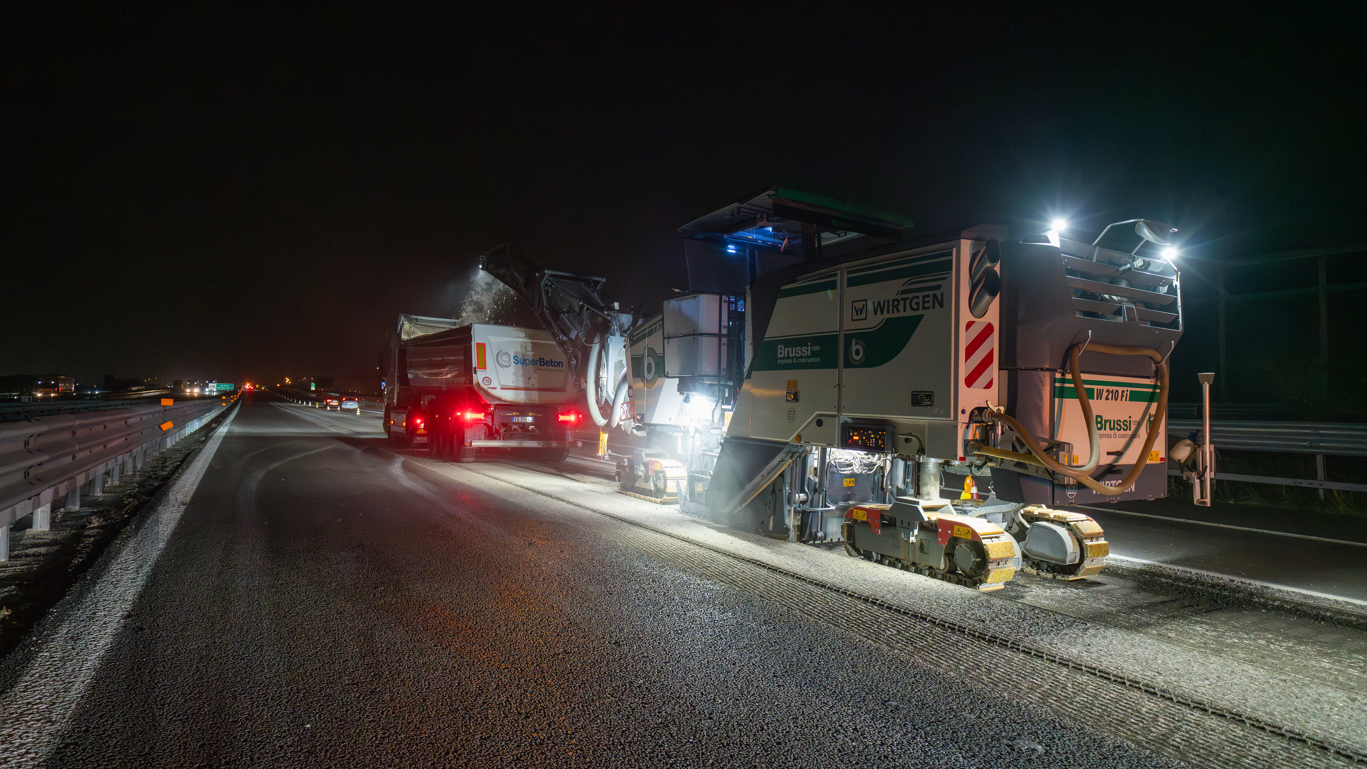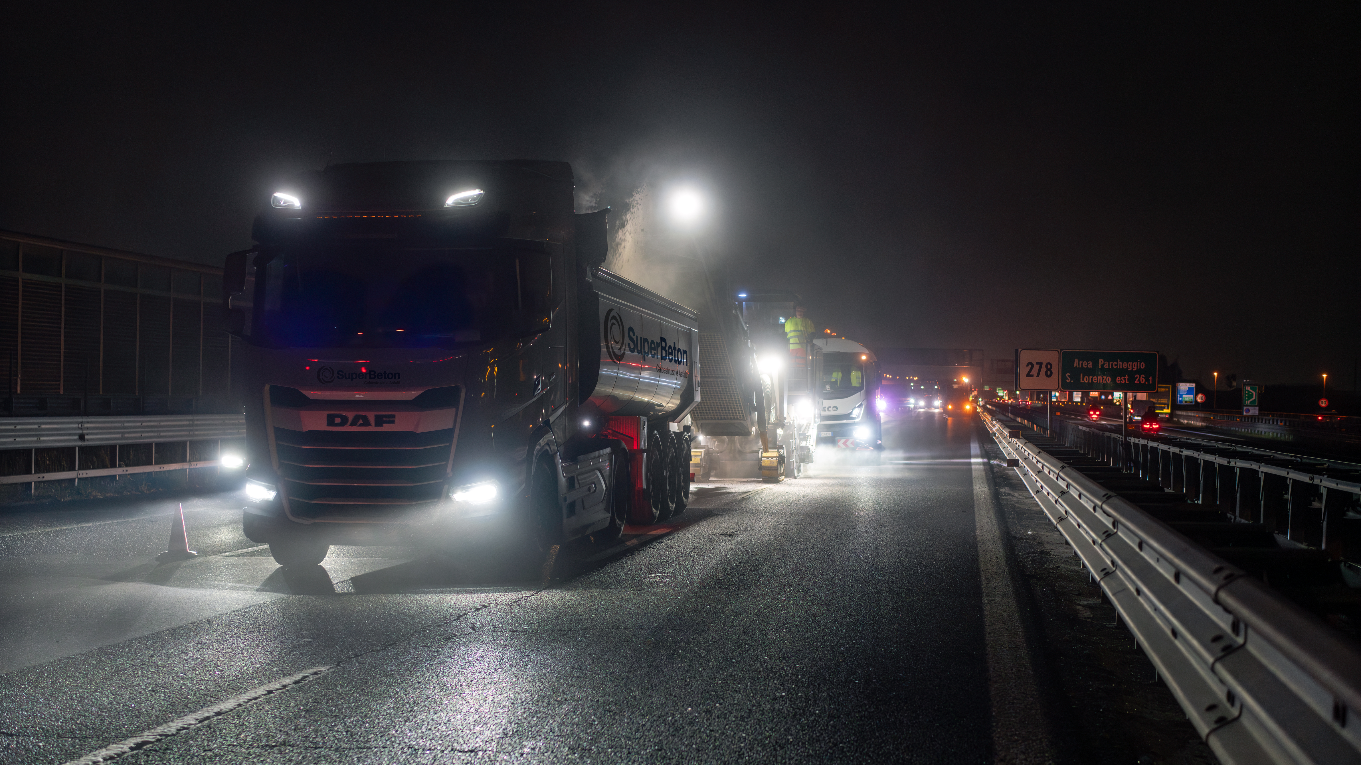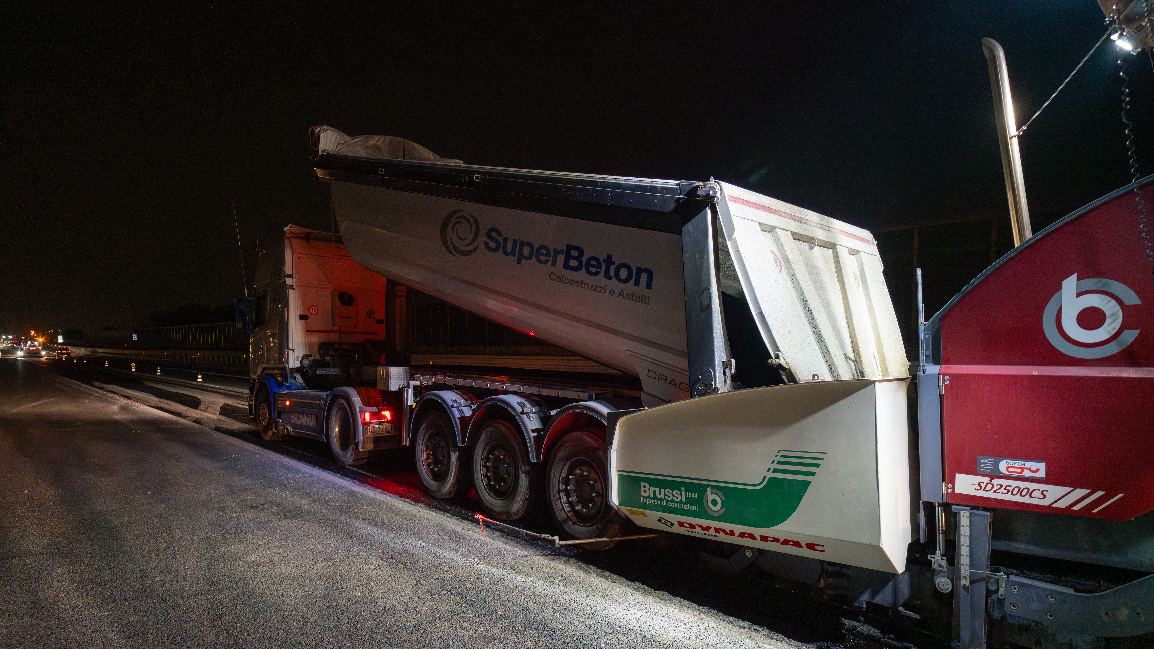 Sull’autostrada A4, nel tratto Verona–Sommacampagna, abbiamo affiancato Brussi Costruzioni SRL fornendo binder e conglomerato drenante dal nostro impianto di Verona, materiali utilizzati per il rifacimento della terza e quarta corsia.